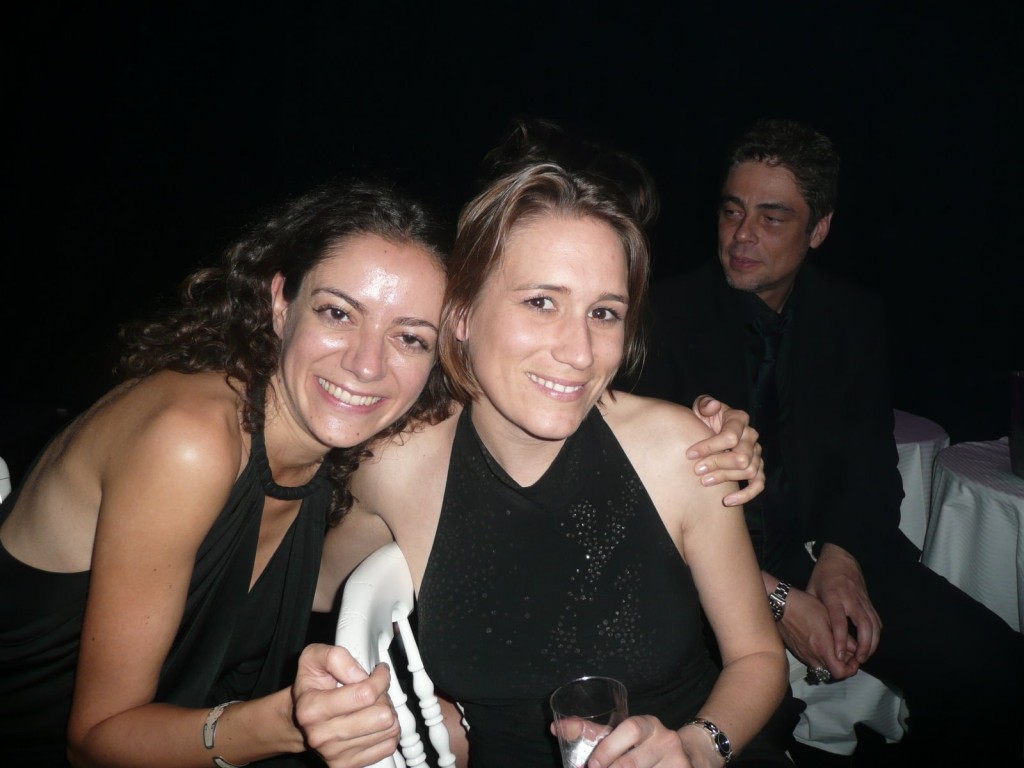 Ahhh.. Benicio del Toro… Sans hésitation ma star préférée du festival… Et le membre du jury le plus fêtard!! Les premières soirées du festival, on n’arrêtait pas de tomber sur lui avec Emily… Et le plus fort, c’est qu’il nous reconnaissait… Après l’avoir croisé une première fois à la soirée d’ouverture au Majestic, voilà qu’on le retrouve le lendemain plage du Carlton pour la soirée du film Tournée… Et lui de nous sortir « twice in a row » (deux fois de suite) lorsqu’on le croise dans les escaliers. Et le soir d’après à la soirée Canal, on a droit à « three times in a row » (trois fois de suite)… Et encore le soir d’après à la soirée Wild Bunch (photo ci-contre)… Là, on était carrément à sa table!! Avec l’équipe du film Tournée et ses actrices américaines pulpeuses et déjantées… A son départ, je me suis précipitée vers lui un peu pompette pour lui demander où il allait le soir d’après histoire de ne pas interrompre cette belle série. Au Baron m’a-t-il répondu… Et vous savez quoi le pire ? Fatiguée ce soir là, je suis rentrée me coucher, et qu’ai-je appris le lendemain?? Que Benicio del Toro était bien au Baron cette nuit-là!! Ah là là, quelle occasion manquée… C’est terrible… Bon allez, c’est pas grave, il sera sûrement là à nouveau l’année prochaine…