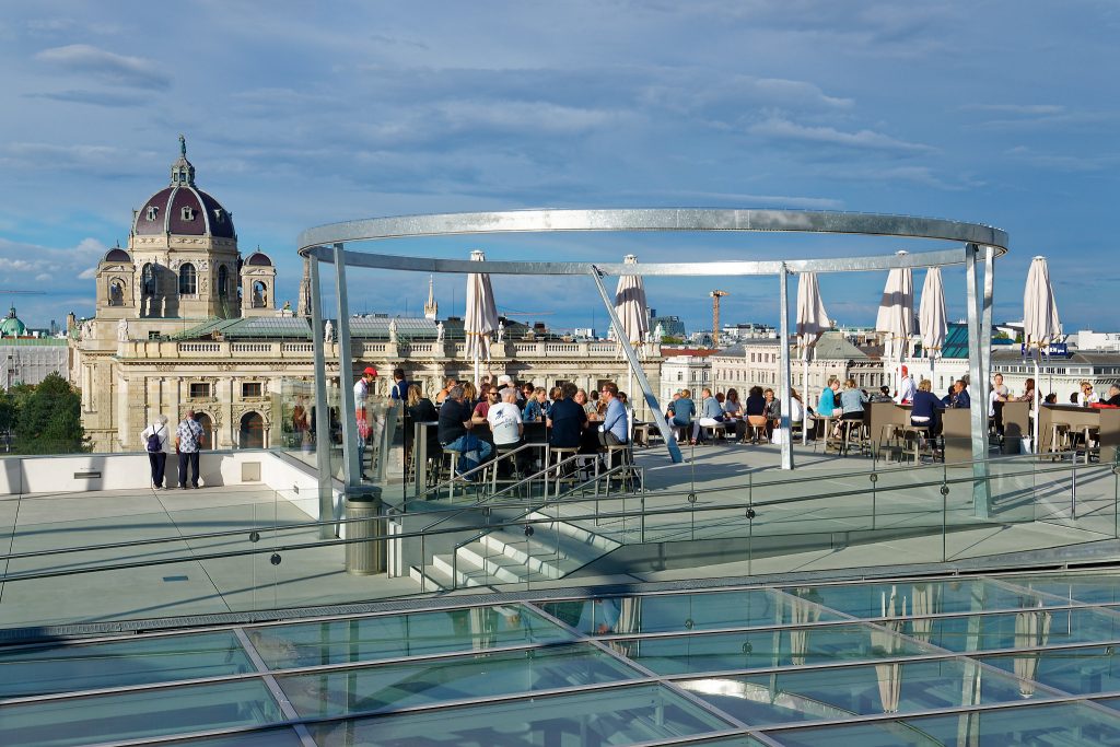Pour boire un verre avec vue. Dans le quartier des Musées, empruntez l’ascenseur qui conduit sur le toit du Leopold Museum. Vous voilà au MQ Libelle, un bar avec vue sur les toits de Vienne. Vous pouvez d’ailleurs juste monter pour profiter du panorama. Pas besoin de s’asseoir pour consommer.